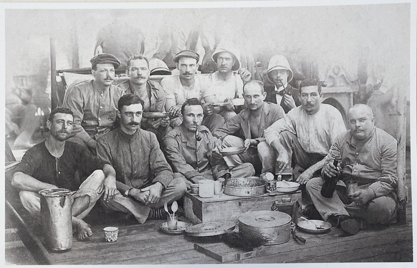 À bord du Sontay, le navire qui les emmène sur le front de la Première Guerre mondiale, on aperçoit Louis Dillenseger (1° rang), le grand-père de Monique Grenda, et son frère Paul, juste à sa droite (Louis est le 3° à partir de la droite, gamelle à la main et Paul juste à côté avec la pipe).Il embarquera six mois plus tard sur le Sontay en compagnie de son frère Paul, pour combattre dans l'armée française, comme son beau-père Jean-Baptiste avant lui. Il ne verra pas la naissance de sa fille Edmonde, en octobre. À Nouméa, Marguerite élève non seulement sa fille mais aussi les quatre enfants de Charlotte Vézia (décédée en 1907), la sœur de Louis et Paul. Au retour de Louis, gazé mais vivant, elle connaîtra quatre grossesses.