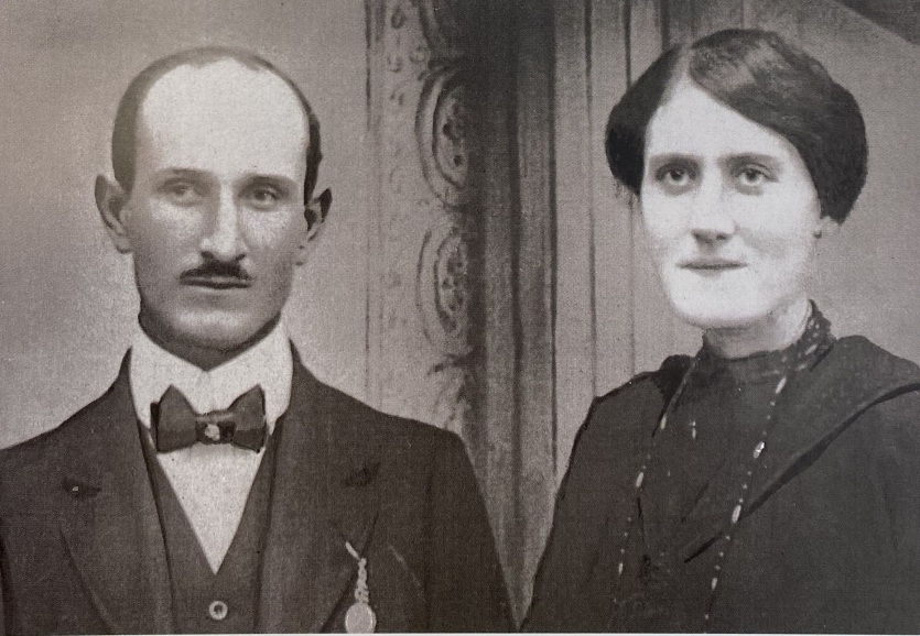 Georges Dillenseger et Clotilde Bellier, les parents de Monique Grenda, autour de 1950.Naîtront Jean en 1918, époux de Marthe Lenez, Georges en 1920, époux de Clotilde Bellier, Edmond en 1921, époux de Christiane Leclère et Marguerite en décembre 1927, épouse de Pierre Martineau. La dernière maternité emportera le 2 janvier 1928, une maman, une épouse et un nom : Marguerite est la dernière de notre branche à avoir porté le nom de Grimm. "