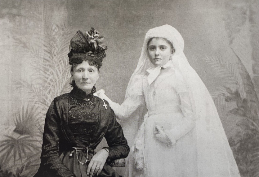 Nouméa, 1925. Marguerite et sa fille Edmonde, le jour de la communion."Ma grand-mère, qui sera appelée Marguerite toute sa vie, est décédée très jeune, à l'âge de 39 ans, trop tôt pour que je la connaisse. C'est elle qui ancrera la famille en Nouvelle-Calédonie, en devenant institutrice et en fondant une famille avec Louis Dillenseger. Encore un Alsacien !