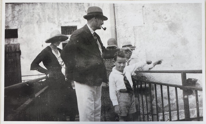 Léopold Guépy, entrepreneur demeurant à Nouville, fils d'Alexandre Guépy, le gardien de phare, épouse Paulette Dubois, âgée de 16 ans, le 10 juin 1933. La photo est prise sur le perron de la maison du commandant du bagne. À cette date, le bagne était fermé depuis deux ans.La mine