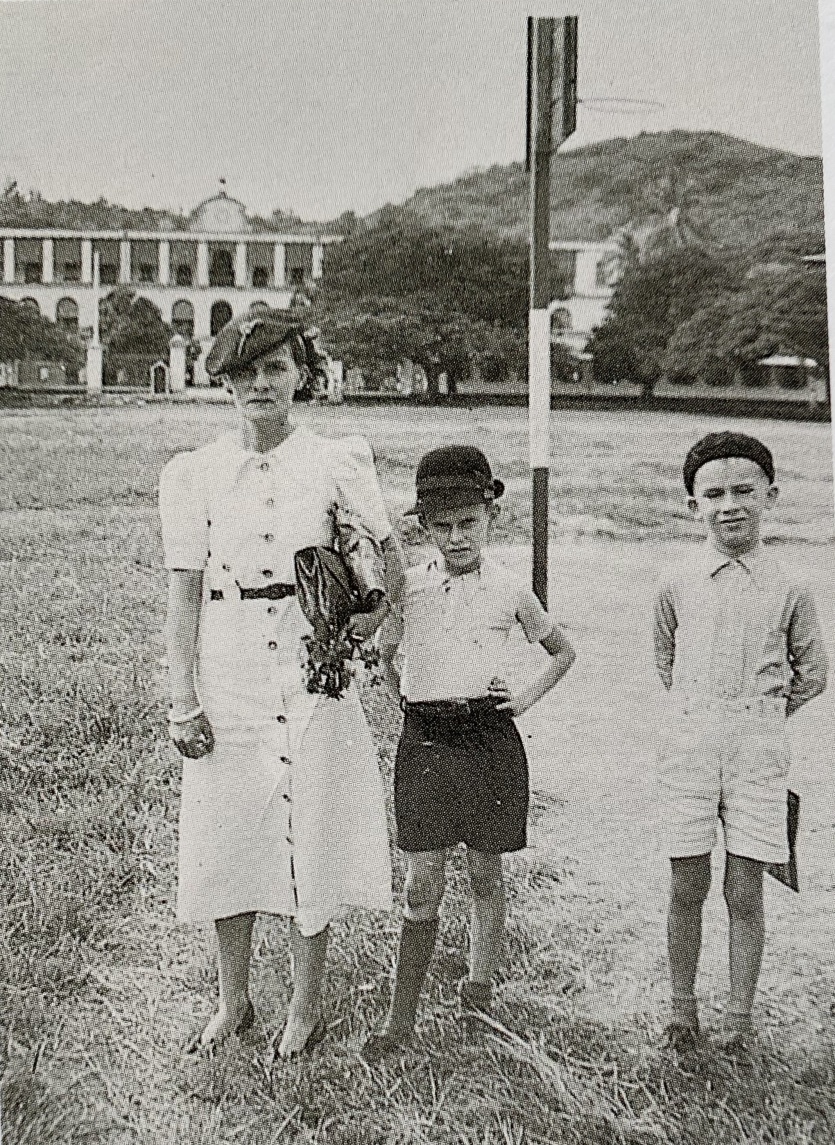 Hectorette Jacquier, son fils André et son neveu Lucien Devambez devant la caserne. Chaque jour, Hectorette se rendait à pied depuis Doniambo où elle habitait, jusqu'au Faubourg-Blanchot où elle enseignait.Le petit-fils d'Hectorette, Thierry Valet, se souvient de l'une des anecdotes qu'elle racontait parfois : " Toute fillette, en compagnie de son frère et de sa sœur, ils avaient tenté de dérober la gamelle d'un condamné arabe, occupé à sa prière du soir, pour voir ce qu'elle contenait. Celui-ci sen était plaint à leur père surveillant qui sut être convaincant !