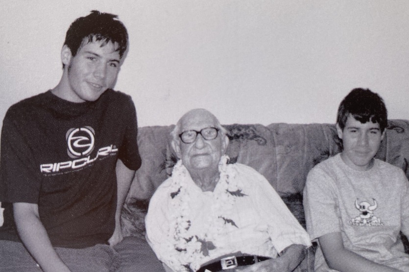 Fernand, le jour de ses 100 ans, entouré de ses arrière-petits-enfants, Grégory et Florian Foucher. En 1933, il épouse Suzanne Pamard avec qui il a un enfant, Raymond. Fernand décède en 2003, l'année de ses 100 ans.Dans les années 40, Étienne est chef mécanicien sur le vapeur le Cagou. Maurice travaille ensuite pour la marine marchande et fait du cabotage sur la côte Est, de l'ile des Pins aux Bélep en passant par les Loyauté.