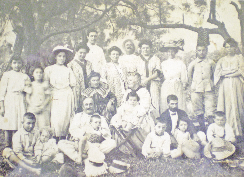 Photo de famille prise en 1911. Assise au centre, Marguerite Gérard, épouse et veuve du pionnier au moment de la photo. Devant elle sur le siège est assise sa petite-fille, Marguerite Gérard, la mère d’Évelyne Henriot. Derrière elle sur sa droite, Julia Bontoux épouse Léon Gérard, la grand-mère maternelle d’Évelyne Henriot. Assis par terre, Léon Gérard et son fils Loulou. Photo DRFrançois Gérard et Marguerite ont trois enfants, Léon Félix qui épouse sa cousine germaine Julia Bontoux (leurs mères sont sœurs et toutes deux ont épousé un surveillant militaire), les grands-parents d’Évelyne Henriot, puis François Alfred marié à Sophie Hubert, dont un des fils, Francis, va s’unir à Paulette Gervolino, descendante de transporté. Et enfin Marie-Louise Marguerite, la grand-mère de Claude Cornet. Après son internat aux demoiselles de La Conception (lire ci-dessous), elle épouse Prosper Limousin, un cultivateur de Yahoué.