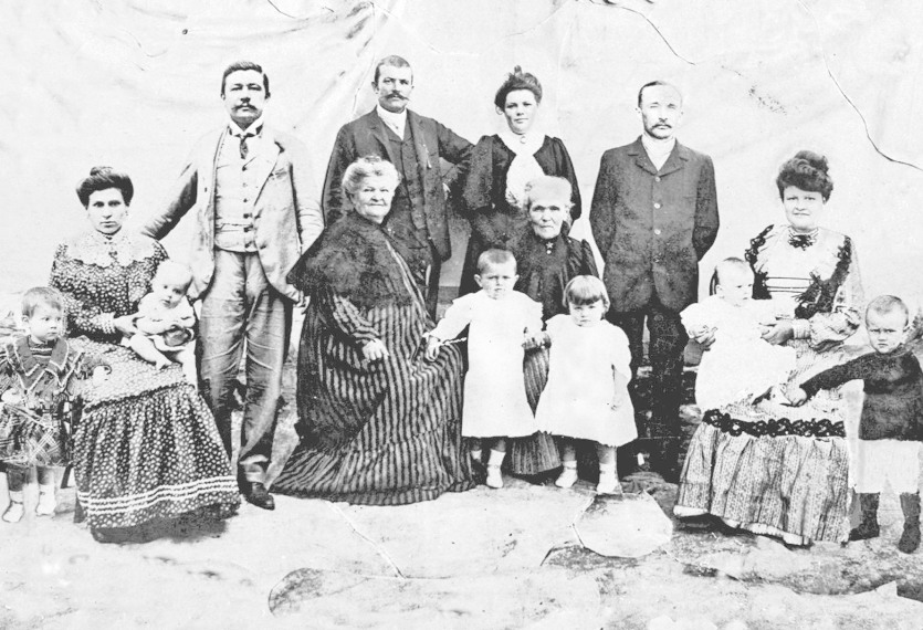 Photo de famille prise en 1907. Au centre de la photo, les deux sœurs Marguerite Mermet, épouse Gérard (à gauche), et Marianne Mermet, épouse Bontoux, toutes deux femmes de surveillants militaires. Puis de gauche à droite, le couple Sophie Hubert et François Alfred Gérard et deux de leurs enfants ; debout derrière leurs mères respectives, le couple Léon Gérard et Julia Bontoux. Leurs enfants, Félix et Loulou, en blanc, sont au premier plan. À droite, Prosper Limousin et son épouse, Marguerite Gérard, et leurs enfants, Emile et Francisque. Photo DRRedevenu instituteur, il rencontre alors notre arrière-grand-mère, Marguerite Mermet, qu’il épouse avant d’être nommé surveillant militaire de troisième classe. Il embarque à l’île d’Aix à bord de l’Orne en juin 1875. Arrivé à Nouméa en septembre, il prend ses fonctions à Bourail. "