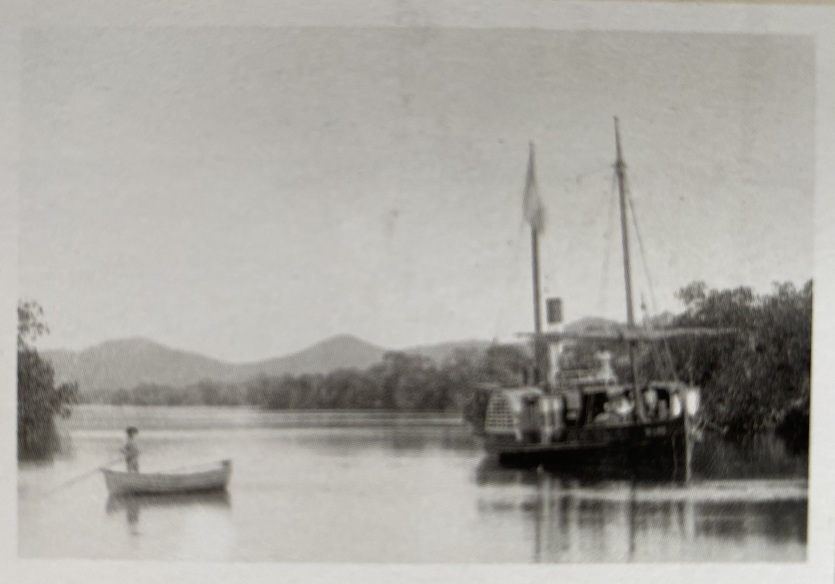 À Balade, les chalands étaient tirés par un remorqueur à vapeur, la Marie. Vers 1884, à la fermeture de la mine, ce bateau a été recyclé sur d'autres cours d'eau et en l'occurrence sur la rivière La Foa. Le 14 mai 1887, Jean Pène achète par acte sous seing privé le navire à M. Tanguy. La Marie était le seul navire à vapeur équipé de roues à aube. Jean Pène puis Vidal assurent le service maritime de Nouméa jusqu'à La Foa, Téremba et Moindou de 1887 à 1894. En 1894, la Marie est retirée du service par Vidal qui achète le Nouméa. Crédit photo : cliché Léon Devambez. La rivière La Foa ANC.Il revend son remorqueur en 1890 puis en achète un plus gros. Avec le Cagou, il fait du cabotage de Nouméa à Bourail entre 1891 et 1894. Ses deux derniers enfants, Raoul, le grand-père de Jean-Claude et Michel, et Gabrielle naissent à Nouméa. L'ouvrage de Jean-Marie Creugnet mentionne que Raoul et Eugène étudient à Païta, à Saint-Léon chez les frères maristes.