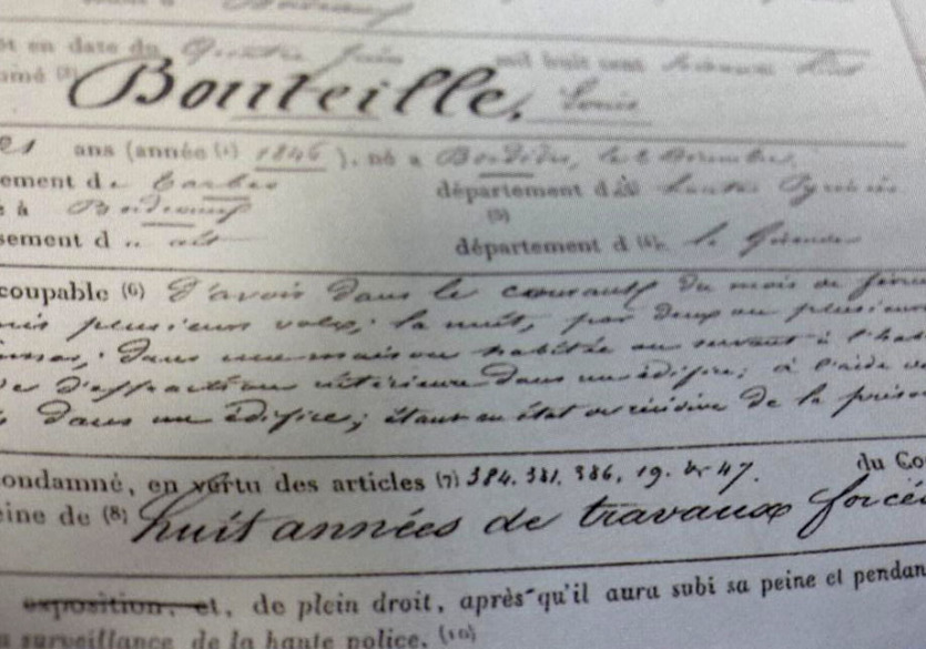 L’acte qui a scellé le destin de Louis Bouteille : sa condamnation à huit ans de travaux forcés, datée du 4 juin 1868. Photo DRLe bagnard et la grande dame