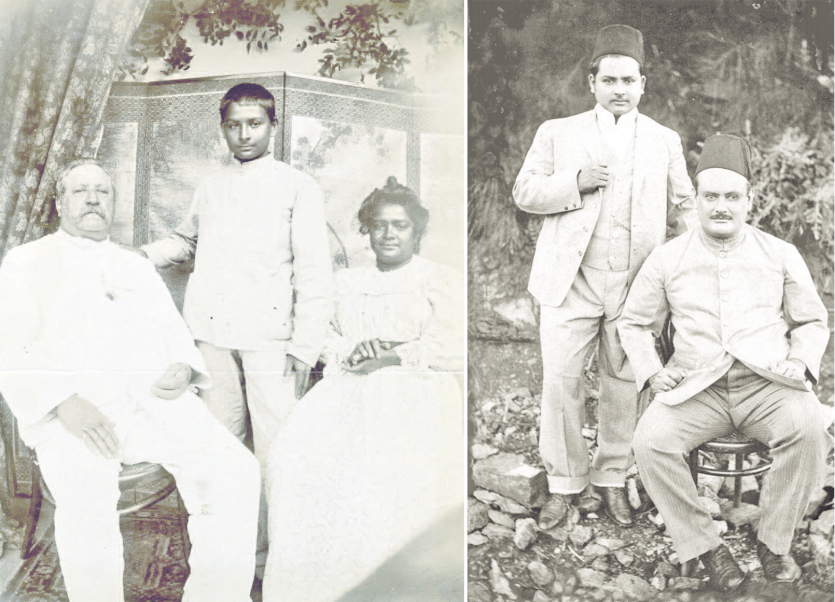 A gauche : Auguste et Julia Watilingan et leur fils Julien né en 1887. A droite : Les deux fils d’Auguste dit Gustave Bouteiller : Julien dit « Lili » et Auguste, l’aîné, à droite. Photos ANC Collection Serge Kakou, cliché Charles Mitride et DRQuelques années après leur mariage, son épouse Kuima et Marie-Louise sont atteintes d’une maladie incurable. Elles sont logées dans une petite maison indépendante sur la propriété. Pour s’occuper d’Auguste fils et de Françoise, Auguste fait appel à Julia Waintiligon, une Indienne de Madras. Martha Pauline et Julien naissent en 1886 et 1887 de ce concubinage mais ne sont pas reconnus car ce n’est qu’après le décès de sa femme Kuima, le 26 août 1906, qu’Auguste épouse Julia, en 1907, celle que les petits-enfants surnommaient affectueusement " grand-mère Yaya ".
