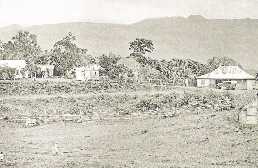 La grande propriété d’Auguste à Nakéty. A gauche, la maison d’habitation, et divers logements abritant une boucherie, une boulangerie, un hangar à café et le logement du personnel. A droite le magasin. Photo DRAuguste va travailler sans relâche pour mettre en valeur son lopin de terre, et ses récoltes lui permettent de s’agrandir. Il achète d’autres terrains, cultive de nombreux caféiers et crée un commerce à côté de son habitation. Son travail est d’ailleurs récompensé en 1889 par l’attribution d’une médaille à l’Exposition universelle pour la qualité exceptionnelle de son café.