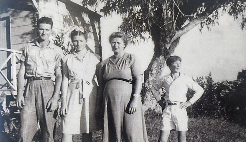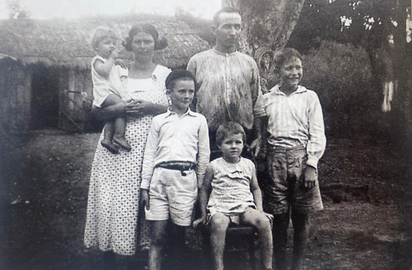 " Notre grand-père a lui aussi eu une vie un peu chaotique. En 1908 à Prony, naît sa première fille, Irène. Puis il a deux autres enfants, Yvonne en 1911 et Théophile en 1916 avec Hélène Rossard. Après avoir été charpentier de marine, il devient journalier. Avec une autre compagne, Aline Perron, il a de nouveau trois enfants, Louis, Raymond et Julien, mais leur mère décède alors qu’ils sont très jeunes. Un couple aisé, les Chauvière, prend sous son aile les deux derniers et les emmène en Métropole.