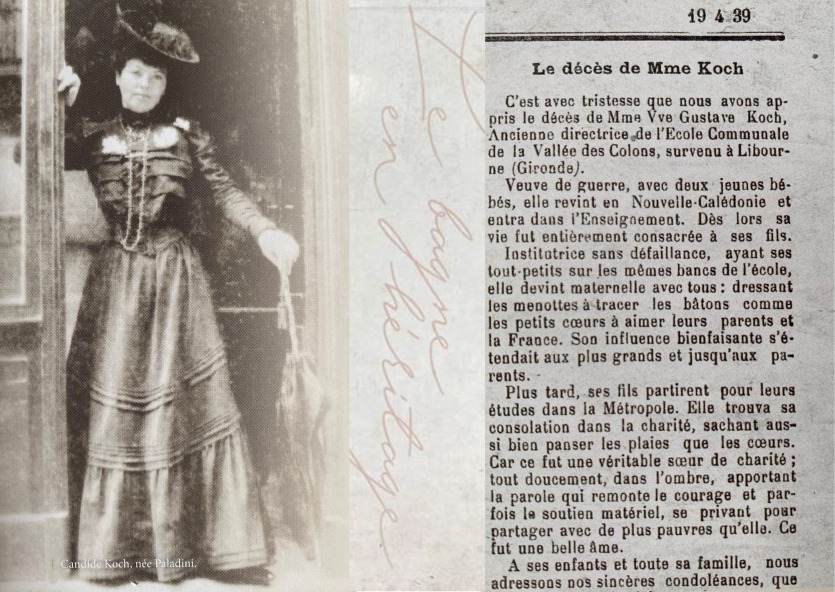 À l'image de leur mère, érudite, les trois aînés étudient en Métropole avant de revenir vivre sur le Caillou. Luigi a eu le privilège de pouvoir retourner en France, il est allé chercher son fils Florindo resté à Paris. Nous avons des cartes postales de sa cadette, Candide, ils sont allés ensemble revoir le village corse d'où il était originaire.
