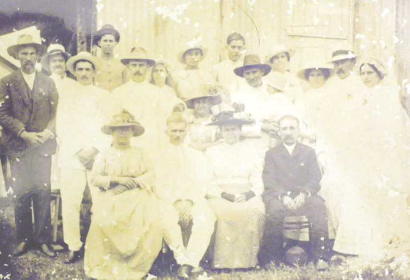 Nous sommes à Bourail, dans les années 1920, et les mariés sont à droite : François, fils de Charles (vêtu de noir au premier rang), épouse Catherine Courtine. Son frère Pierre épousera Marie Courtine. Photo DRLe 1er août 1876, le matricule 8284 est incarcéré au bagne de l’île Nou, où il passera très exactement trois ans avant sa mise en concession provisoire à Bourail. En janvier 1878, le Buffon débarque Marie et le jeune Charles à Nouméa. Elle est rapidement transférée au couvent des femmes de Bourail, Charles est envoyé à l’internat de Néméara, avant de rejoindre Pascal sur la concession.