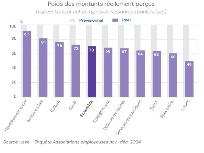 Entre mars et novembre 2024, les associations "employeuses" ont dû composer avec une diminution de 30 % de leur budget prévisionnel, passant de 20,8 à 14,6 milliards de francs. Les domaines du spectacle et surtout des loisirs ont été particulièrement pénalisés, ayant respectivement reçu 60 % et 49 % des montants attendus. Les dotations des provinces et du gouvernement ont par exemple subi de lourdes diminutions. En effet, seuls 56 % des fonds provinciaux et 55 % des fonds gouvernementaux ont été versés aux associations. L’État, lui, leur a octroyé 82 % des montants prévus.