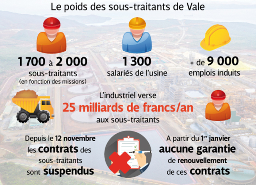 - Depuis le 12 novembre, les 2 000 employés sous-traitants de Vale n'ont plus de travail. La « force majeure » a été déclarée, ce qui implique une suspension de leurs contrats... qui s'arrêtent au 31 décembre. Or, en l'absence d'accord sur la reprise de l'usine, et donc de l'activité, les sous-traitants redoutent une « destruction massive d'emplois ».Sans travail depuis un mois et demi, beaucoup ont dû se serrer la ceinture pour passer ces fêtes de fin d'année. Mais le plus inquiétant, et le plus difficile, est peut-être encore à venir pour les quelque 2 000 employés sous-traitant de Vale. Depuis le 12 novembre, et le début desIl vous reste 97% de l'article à découvrir.Cet article est réservé aux abonnés.