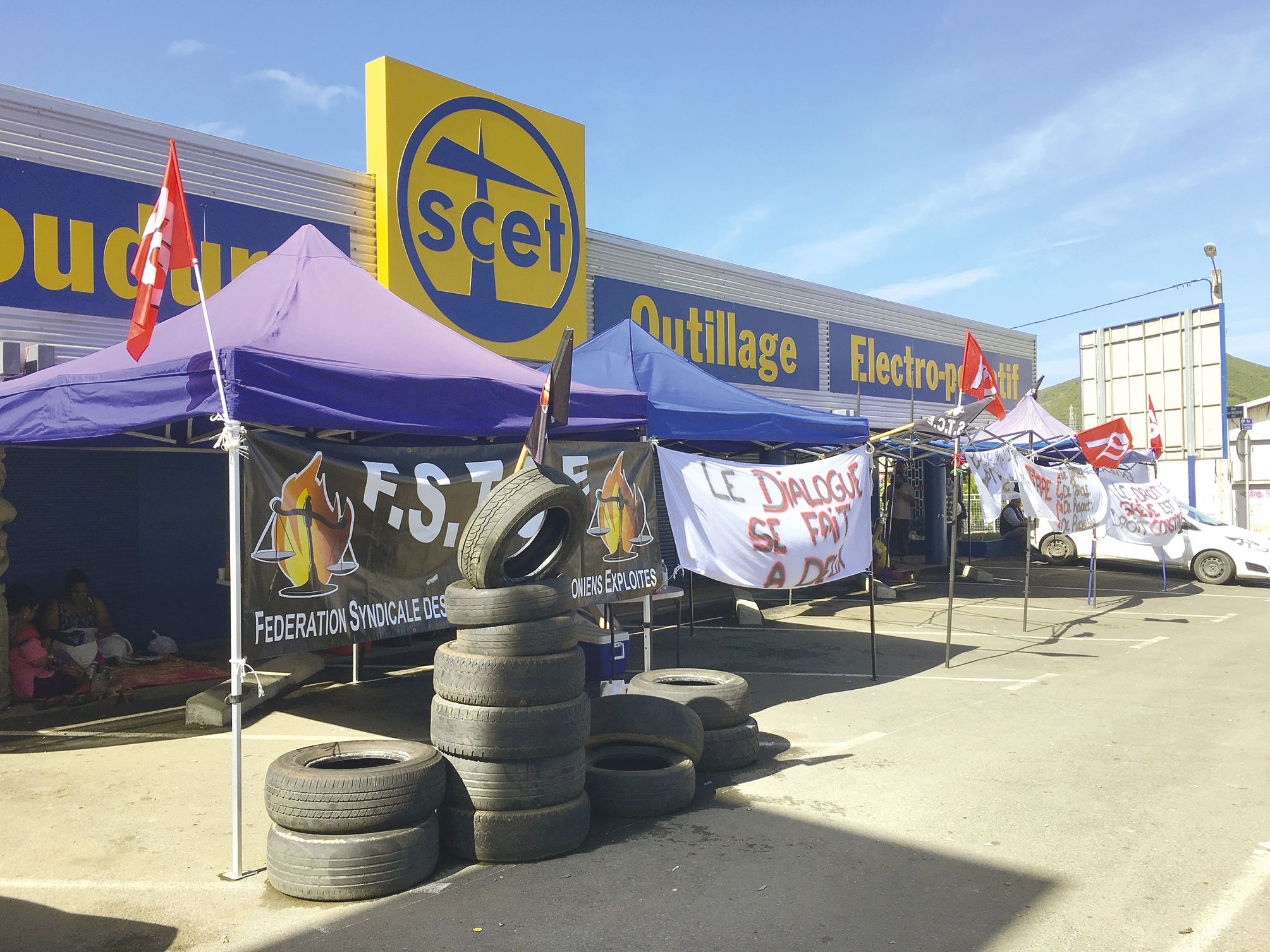 - Force ouvrière et la FSTCE (fédération syndicale des travailleurs calédoniens exploités) ont installé un piquet de grève devant le magasin Scet, route de la Baie-des-Dames, à Ducos. Les négociations portent sur la prime d’intéressement. Hier, la direction restait injoignable.Photo LNCIl vous reste 5% de l'article à découvrir.Cet article est réservé aux abonnés.