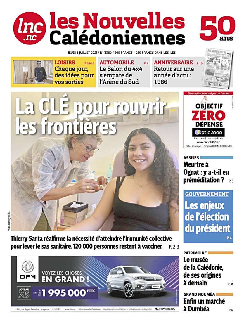 - Olivier Poisson | Crée le 08.07.2021 à 01h15 | Mis à jour le 08.07.2021 à 01h23ImprimerLa Une du 8 juillet 2021En raison d'un important problème technique, Les Nouvelles calédoniennes ne paraîtront pas en version papier ce jeudi 8 juillet.