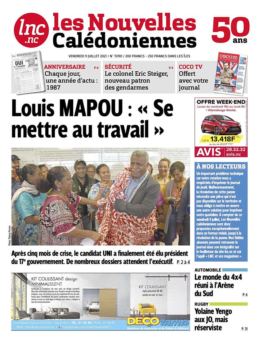 À compter de ce vendredi 9 juillet, Les Nouvelles calédoniennes sont donc proposées exceptionnellement dans un format réduit, et ce, jusqu’à la résolution de la panne.