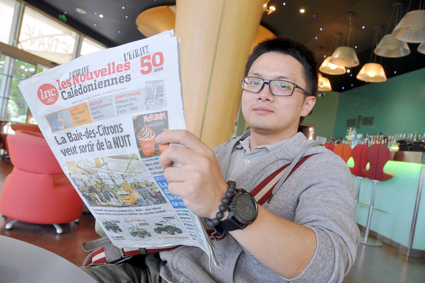 Gan Xu a posé le pied en Nouvelle-Calédonie il y a cinq ans pour raisons professionnelles. Son domaine : "l'import-export". Son nom ne ment pas, le trentenaire est "100 % Chinois", originaire de la ville de Yuyao dans la province du Zhejiang, fixée dans l'Est du grand pays au drapeau rouge étoilé. Peu de temps après s'être installé à Nouméa, Gan Xu s'est abonné aux Nouvelles calédoniennes. "Au début, j'achetais le journal papier, mais, quand je suis hors du territoire, c'est évidemment plus compliqué !" sourit l'homme au regard pétillant derrière ses lunettes. "Je me suis donc abonné au web. Toutefois, quand je suis ici, je continue à acheter le format papier !" Parce que, le matin, cette lecture est "plus confortable" avec un café, la version digitale restant "pratique" sur le terrain, explique le cadre d'entreprise dans un français parfait, travaillé tout d'abord en Chine pendant trois ans, puis amélioré du côté de La Rochelle en Métropole. En Calédonie, "je continue à apprendre des mots comme Oleti !"