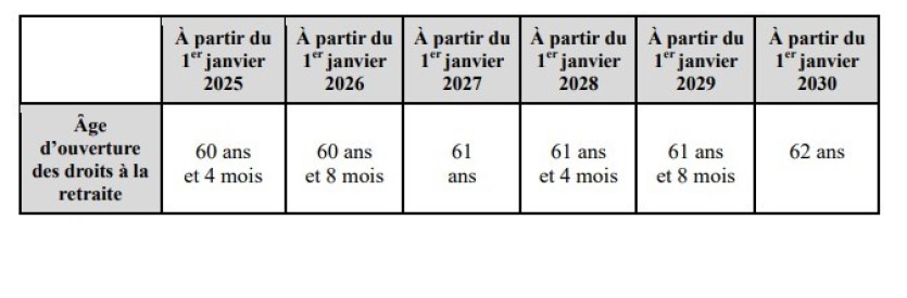 Ainsi, le texte prévoit un recul de l’âge légal de départ à la retraite retardé de quatre mois chaque année, pendant six ans, entre 2025 et 2030.
