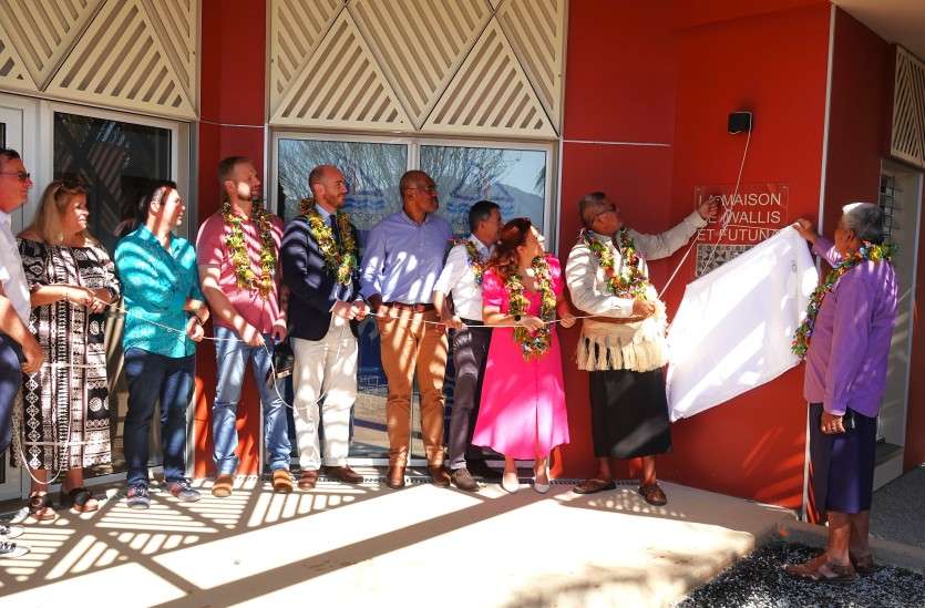 - A.T. | Crée le 25.07.2025 à 17h00 | Mis à jour le 26.07.2025 à 18h44ImprimerLes représentants de la province Sud, du gouvernement, de la préfecture et de l’assemblée territoriale de Wallis-et-Futuna ont dévoilé la plaque de l’établissement ce vendredi, en fin de matinée. Photo Anthony TejeroInauguration en grande pompe, ce vendredi 25 juillet, de la Maison de Wallis-et-Futuna, à Magenta, située à côté du foyer wallisien. Une infrastructure inédite qui vise à mieux accompagner et intégrer les populations du Fenua fraîchement débarquées sur le Caillou, tout en valorisant la culture de cette communauté.