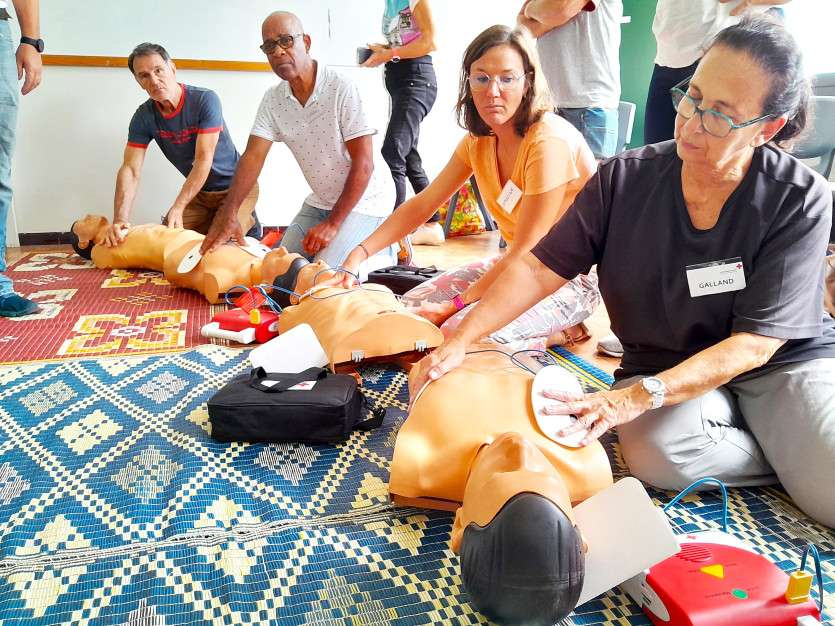 - Anthony Tejero | Crée le 12.10.2023 à 06h06 | Mis à jour le 12.10.2023 à 07h06ImprimerGroupama-Gan mène une campagne nationale qui vise à initier un million de personnes aux gestes qui sauvent. Sur le Caillou, le coût de ces formations est estimé à 3 000 F par personne. Photo Anthony TejeroTout au long de l’année, des bénévoles de la Croix-Rouge proposent de former les Calédoniens aux gestes de premiers secours. Gratuites et dispensées à travers tout le pays, ces sessions d’une durée de deux heures peuvent être déterminantes pour sauver une victime.