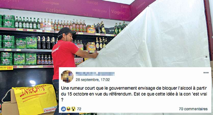- P. Ch. | Crée le 05.10.2018 à 04h30 | Mis à jour le 05.10.2018 à 06h47ImprimerLa rumeur d’un arrêt de la vente d’alcool à partir de la mi-octobre s’est répandue sur les réseaux sociaux. Photo LNC et capture écran FacebookSOCIÉTÉ. Thierry Lataste a annoncé hier que la vente d’alcool sera interdite lors du week-end du référendum.