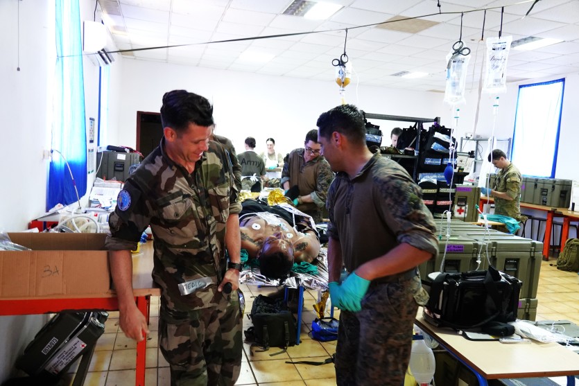 Les Australiens, Américains et Français mettent en commun leur matériel et leurs compétences pour gagner en efficacité. Photo Anthony Tejero"C’est hyper important de s’entraîner tous ensemble pour nous améliorer dans notre coordination et être plus performants sur les moyens et les méthodes de travail qui peuvent varier d’un pays à l’autre, glisse, entre deux évacuations de victimes, le commandant Laura, médecin en charge de la coordination du centre d’accueil massif des blessés, qui rappelle l’importance de ce travail d’équipe. Dans ce genre de situation, la première heure de prise en charge et de soins prodigués peut être décisive pour sauver ou non un patient." Pas de quoi laisser donc place à l’improvisation entre les différentes armées, par ailleurs confrontées "à la barrière de la langue", notamment pour les termes techniques.