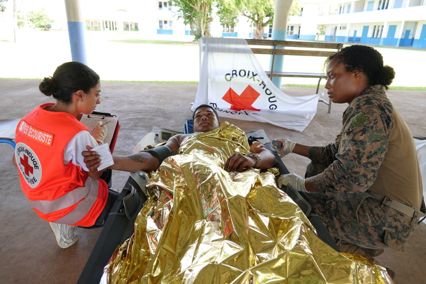 La Croix rouge de Nouvelle-Calédonie a été envoyée en appui pour s'occuper des blessés jugés les plus légers. Photo Anthony TejeroMERCI DE VOUS IDENTIFIER