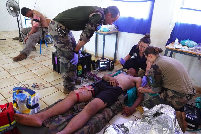 Les premiers soins prodigués sont essentiels. Photo Anthony Tejero"Cet exercice répond à plusieurs objectifs. Tout d’abord il s’agit de se rapprocher au plus près des conditions d’une opération réelle et donc de se projeter sur un territoire assez isolé comme cet archipel dans la mesure où dans le Pacifique, les distances peuvent être très longues, explique le colonel Walter Riccardi. L’autre point, très important pour les Fanc, c’est de connaître ce territoire qui appartient à notre zone de responsabilité, ainsi que ses infrastructures, notamment si un jour, il y a en effet nécessité à intervenir."