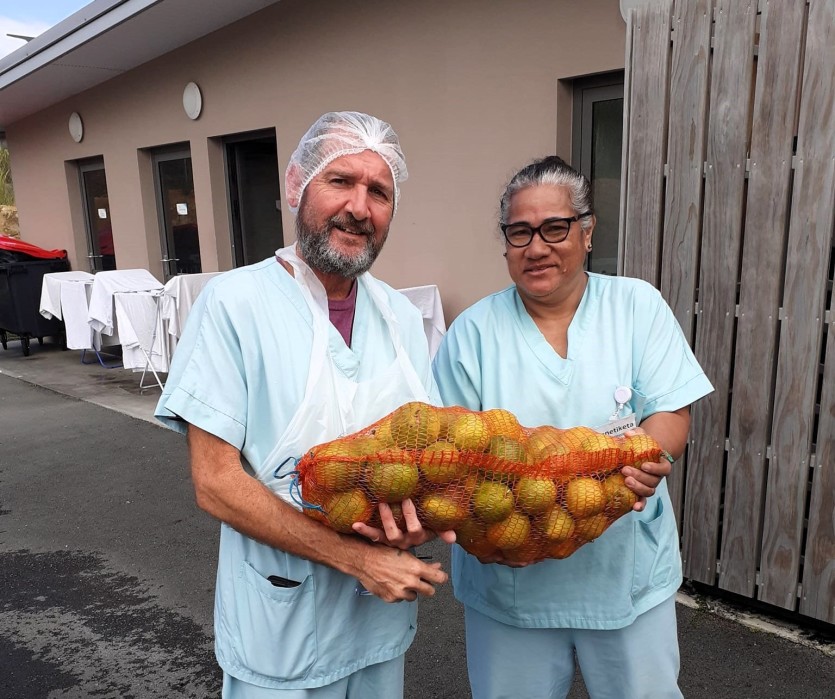 Alors qu’il commençait à manquer de nourriture pour ses résidents, l’Ehpad Les Pavillons d’Eugénie à Païta a été livré en fruits et légumes par Hélène et Sébastien, exploitants agricoles de Tontouta. Photo DRLes réseaux pour organiser l’entraide