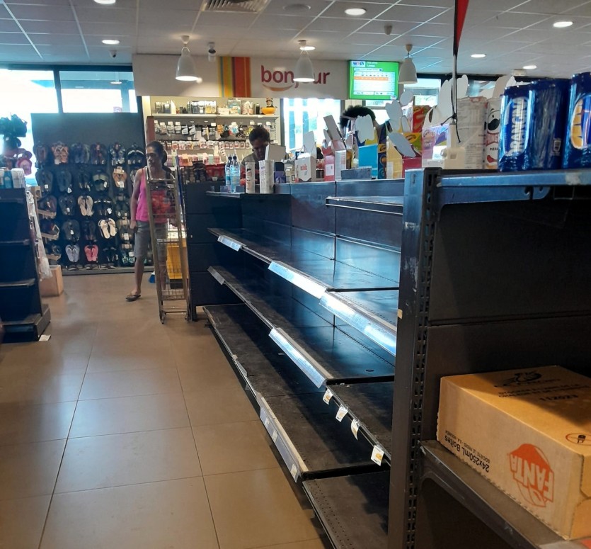 Dans les rayons des épiceries et des stations, les produits commencent à manquer. Photo DRLors d'un nouveau point presse, Louis Le Franc a indiqué qu’un bateau transportant 47 conteneurs de produits alimentaires était arrivé au port dans la matinée de jeudi. Un autre de 56 conteneurs (comprenant également des médicaments) doit arriver vendredi. Reste à assurer le transport des denrées jusqu’aux magasins encore intacts.
