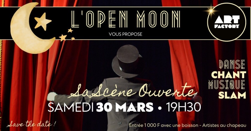 Première scène ouverte de l’année avec l’Open moon et ses artistes passionnants, à l’Art Factory. Photo Art factory.La Scène de l’Open moon accueille ce samedi sa première édition 2024 à l’Art Factory. De nombreux artistes, danse, chant, musique, slam, se produisent sur cette scène ouverte. Tarif : 1 000 F avec une boisson. Places en prévente uniquement à la galerie auprès de Delphine, tél. : 82 28 10.Renseignements sur la page Facebook de l’événement.