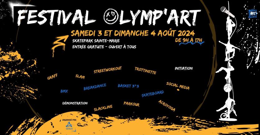 Le festival Olymp’Art se déroulera samedi 3 et dimanche 4 août au skatepark de Sainte-Marie. Photo DRDans le cadre de l’Olympiade culturelle en outre-mer, le Groupement d’employeurs sport et loisir Sud organise le Festival Olymp’Art. Cet événement allie les nouveaux sports olympiques issus de la rue à la culture urbaine et au street art au skatepark de Sainte-Marie. Au programme, de nombreuses initiations et démos avec des nouveaux sports olympiques issus de la rue : basket 3x3, breakdance, skateboard et BMX. Mais aussi des activités révélées par la culture urbaine et le street art : streetworkout, parkour, slackline, graff, acroyoga, slam. Toute la journée, des foodtrucks pour se restaurer et des stands associatifs pour s’informer. De 9 heures à 17 heures, entrée gratuite et libre. Pour plus infos : mission@gesls.nc, Tél. : 24 40 30 ou 24 40 41.