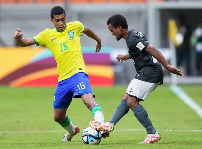 - Baptiste Gouret | Crée le 15.11.2023 à 07h36 | Mis à jour le 15.11.2023 à 07h36ImprimerL’équipe du Brésil a été tout simplement trop forte face aux jeunes Cagous, dominant tous les aspects du jeu. Alex Caparros/FIFALes Brésiliens ont largement dominé la rencontre en battant la sélection calédonienne 9-0, mardi soir, au stade international de Jakarta. Les Cagous joueront leur dernier match de groupe vendredi soir, face à l’Iran.