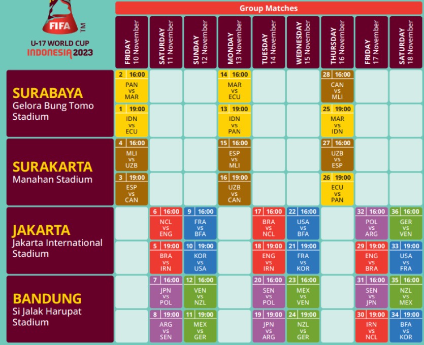 Le calendrier des matches de la Coupe du monde de football des moins de 17 ans en Indonésie. Illustration FifaMERCI DE VOUS IDENTIFIER