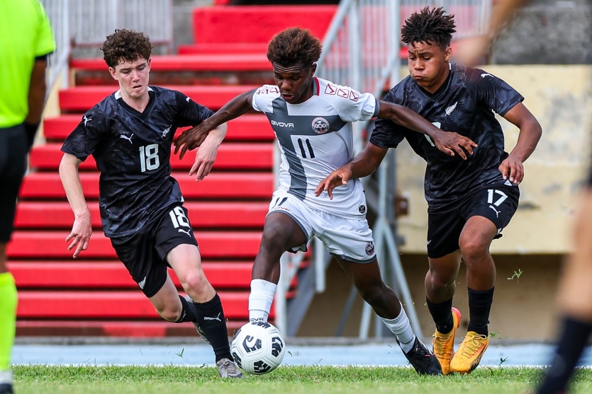 Les U16 Calédoniens vont défier les favoris Néo-Zélandais ce midi à Papeete. Photo DJ Mills / Phototek.nz[11h30] La Nouvelle-Calédonie emmènera-t-elle deux équipes en phase finale de Coupe du monde football en 2025 ? L’espoir est permis. Après les U19, qualifiés mi-juillet pour le Mondial U20 2025 au Chili, les U16 sont en passe de décrocher un billet pour la Coupe du monde U17 2025 au Qatar.