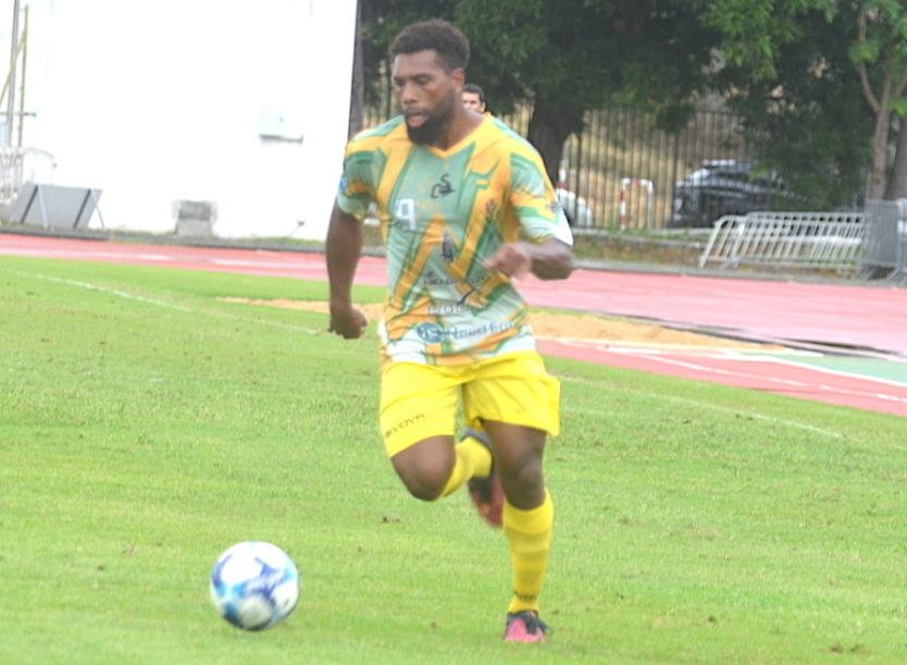 - Pierre Guillot | Crée le 24.04.2024 à 10h35 | Mis à jour le 24.04.2024 à 10h39ImprimerGrâce au pénalty marqué contre Tiga Sport dimanche après-midi à Numa-Daly, Germain Haewegene a porté son total à 11 buts, confortant ainsi sa première place au classement des buteurs. Photo Pierre GuillotEt de 11. Avec une nouvelle réalisation contre Tiga dimanche, l’attaquant de l’AS Magenta a creusé l'écart sur ses poursuivants qui sont désormais quatre à la deuxième place (5 buts) du classement des buteurs de la Super Ligue 2024.