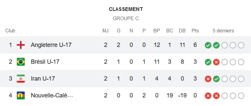 - NL | Crée le 17.11.2023 à 07h03 | Mis à jour le 17.11.2023 à 10h01ImprimerContre le Brésil, Bayron Gohoup et ses partenaires ont contenu pendant 30 minutes les vagues auriverde. La suite s’est avérée beaucoup plus compliquée. Photo Alex Caparros / FifaLes Calédoniens vont jouer leur troisième et dernier match de la Coupe du Monde U17 ce vendredi soir, à 23 heures, au Si Jalak Harupat Stadium de Bandung, en Indonésie. Face à l’Iran, tombeur du Brésil, les joueurs de Leonardo Lopez comptent bien défendre crânement leurs chances.
