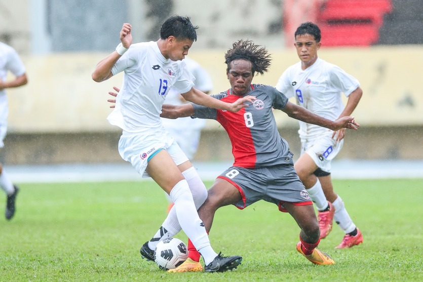 - NL | Crée le 30.07.2024 à 14h47 | Mis à jour le 30.07.2024 à 14h48ImprimerMichel Trohmae et les U16 calédoniens ont perdu leur premier match contre de solides Samoans, ce mardi au Stade Pater, à Papeete. Photo DJ Mills / FCFLa sélection U16 calédonienne démarre très mal son tournoi de qualification pour la Coupe du monde U17. Elle s'est inclinée ce mardi face aux Samoa (2-0) à Tahiti.