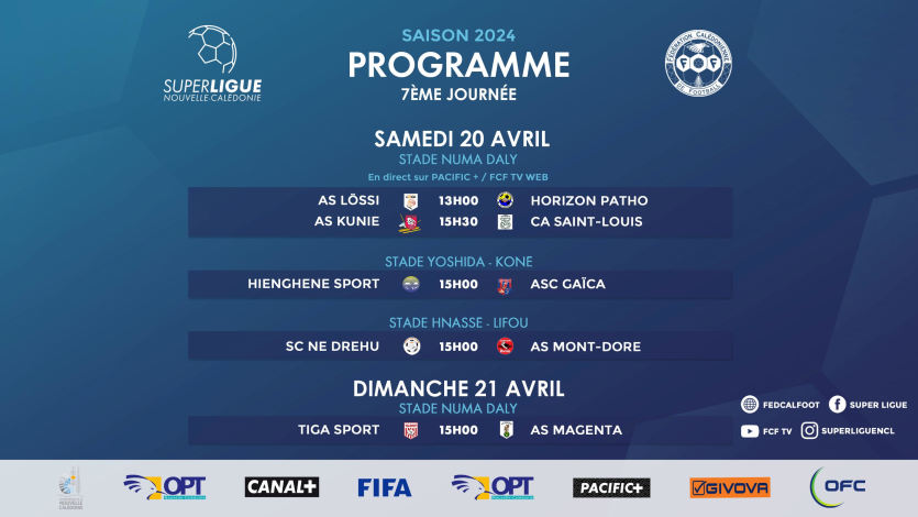 - Pierre Guillot | Crée le 20.04.2024 à 05h00 | Mis à jour le 13.05.2024 à 12h04ImprimerAu mois de mai dernier à Numa-Daly, lors de leur affrontement de l’aller, Magenta (en blanc et jaune) et Tiga, dans leurs anciennes tenues, s’étaient neutralisés 0 à 0. Photo Alain VartaneLe leader face à son dauphin. C’est l’alléchante affiche proposée dimanche lors de la septième journée de la phase régulière de la Super Ligue. Avant cela, quatre autres rencontres se dérouleront samedi, dont un très important SC Ne Drehu – AS Mont-Dore en bas de classement.