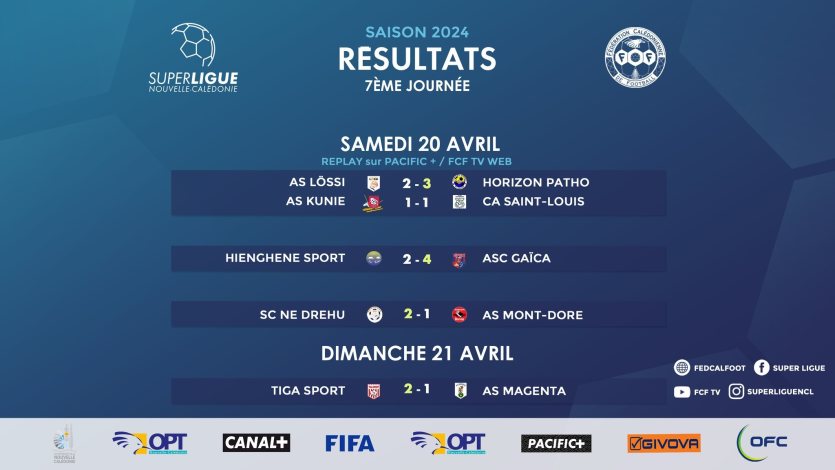 Prochaine journée, la huitième, ce samedi 27 avril avec comme principale affiche le match entre Tiga et Gaïtcha alors qu’au stade de Boulari, le derby entre l’AS Mont-Dore et le CA Saint-Louis est également très attendu.