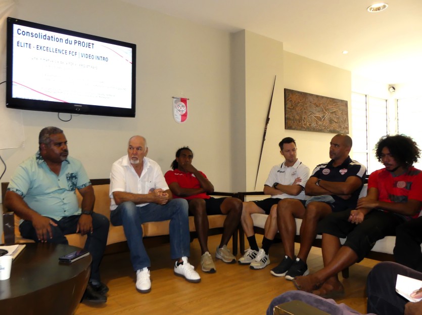 - Baptiste Gouret | Crée le 05.09.2024 à 05h00 | Mis à jour le 05.09.2024 à 05h00ImprimerLes membres de la Fédération calédonienne de football ont tenu une conférence de presse, ce mercredi 4 septembre, afin de présenter le projet "élite-excellence" développé pour dénicher des jeunes talents et les faire progresser. Photo Baptiste GouretFinancée par la Fifa pour mener à bien son projet "élite-excellence", la Fédération calédonienne de football travaille depuis 2023 à la formation de ses cadres et au développement de structures de détection pour aller chercher des jeunes talents.