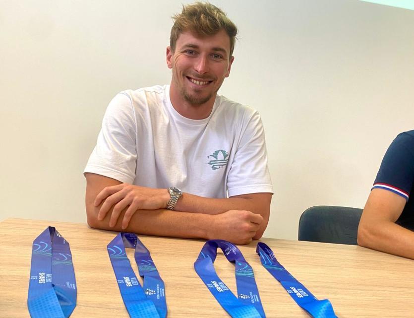 Sans oublier, entre-temps, les Jeux du Pacifique, qui auront lieu à Tahiti en 2027. Et Christophe Dabin, le président du CTOS, aimerait beaucoup convaincre le nageur de rejoindre la sélection calédonienne. "On a eu la chance, jeudi dernier, de réunir l’ensemble des athlètes expatriés qui étaient en vacances sur le territoire, explique-t-il. On leur a bien dit qu’on avait besoin d’eux pour les Jeux de Tahiti, parce que la tâche allait être extrêmement difficile. Avoir un athlète d’excellence comme Maxime, ça serait véritablement le summum. Ça serait vraiment la cerise sur le gâteau pour l’équipe de Nouvelle-Calédonie. Donc j’espère qu’il pourra participer, comme d’autres nageurs. Ça ferait un excellent porte-drapeau", ajoute le président dans un sourire.