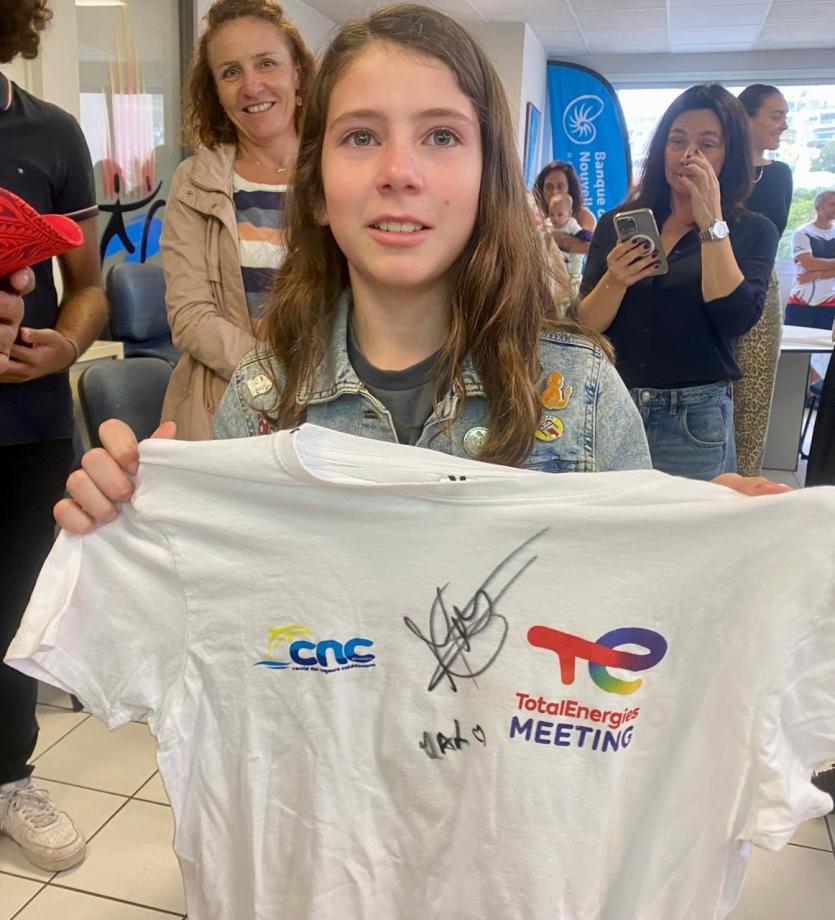 Cette jeune supportrice a les larmes aux yeux, elle a réussi à décrocher un autographe de son idole. Photo Julien MazzoniMême s’il est vacances "pour reprendre de l’énergie, se ressourcer, revoir la famille, la dernière fois que je suis revenu en Nouvelle-Calédonie, l’année d’après j’étais champion du monde", rappelle-t-il, en évoquant déjà les échéances futures. "Je vais repartir pour un gros travail, on va aller aux championnats d’Europe l’année prochaine, à Paris, en grand bassin. Mon concurrent Noé Ponti commence déjà à me titiller. Il m’a dit “l’année prochaine, c’est chez toi”, il veut me défier, donc ça va être sympa. Mais après les championnats d’Europe, il y aura les championnats du monde, ça sera encore une année différente et peut-être pleine de surprises. Et puis il y a toujours un œil vers les Jeux de Los Angeles en 2028."