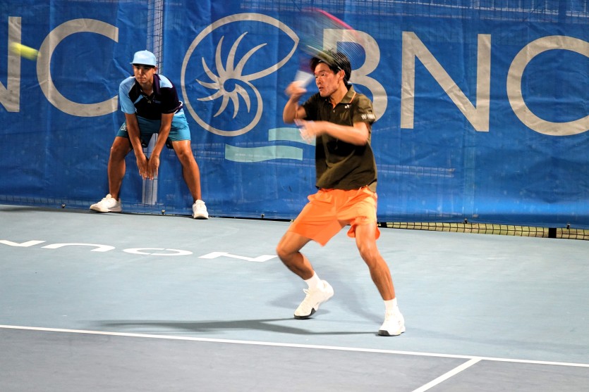 L’Américain Michaël Zheng a remporté son quart de finale face à Clément Tabur. Photo Baptiste GouretL'autre demi-finale verra s’affronter le Français Arthur Géa, vainqueur jeudi du Canadien Liam Draxl (6-3/6-2), et l’Américain Michaël Zheng. Le joueur tricolore est le dernier représentant français du tournoi, après la victoire de son adversaire du jour face à Clément Tabur en quarts de finale (3-6/6-4/6-2), jeudi soir.