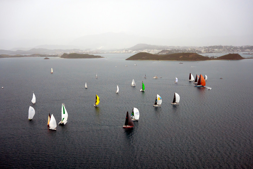 Accueil > Nouvelle Calédonie > Sports > Voile > La 7e édition de la Groupama Race a été lancée sous la pluie