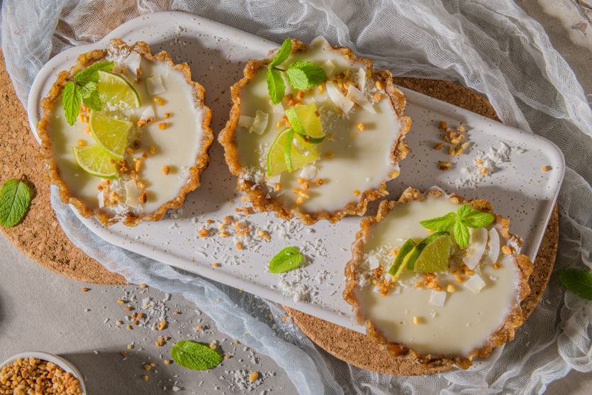 - Pour 4 personnes1 rouleau de pâte sablée 250 g de chocolat blanc 1 citron jaune 1 combava 20 cl de crème liquide 20 g de beurre 2 feuilles de gélatine alimentairePréchauffer le four th. 6 (180 °C). Beurrer 4 moules à tartelettes et les garnir de pâte sablée. Piquer le fond à laIl vous reste 67% de l'article à découvrir.Cet article est réservé aux abonnés.