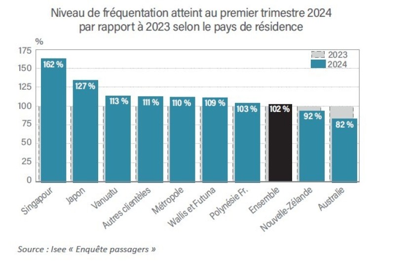Le record de fréquentation des Australiens (6 724 personnes) et des Néo-Zélandais (1 750) avait, lui, été atteint au premier trimestre 2023. Pour autant, en 2024, 5 510 Australiens ont été recensés, ce qui constitue la deuxième source de touristes, représentant 21 % de l’affluence totale.