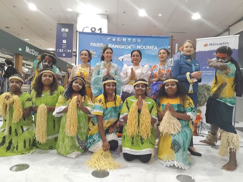 - Anthony Tejero | Crée le 11.12.2024 à 01h37 | Mis à jour le 12.12.2024 à 05h42ImprimerLes danses traditionnelles kanak et thaïlandaises sont à l'honneur à l'aéroport. Photo Anthony TejeroLe premier vol commercial entièrement opéré par Aircalin entre la Nouvelle-Calédonie et Paris est officiellement lancé. Dans la nuit de ce mercredi, près de 280 passagers ont embarqué à bord de cette nouvelle ligne qui transite par Bangkok et doit relier l’Hexagone en un temps record, soit moins de 24 heures de trajet. Suivez en direct ce périple inédit.