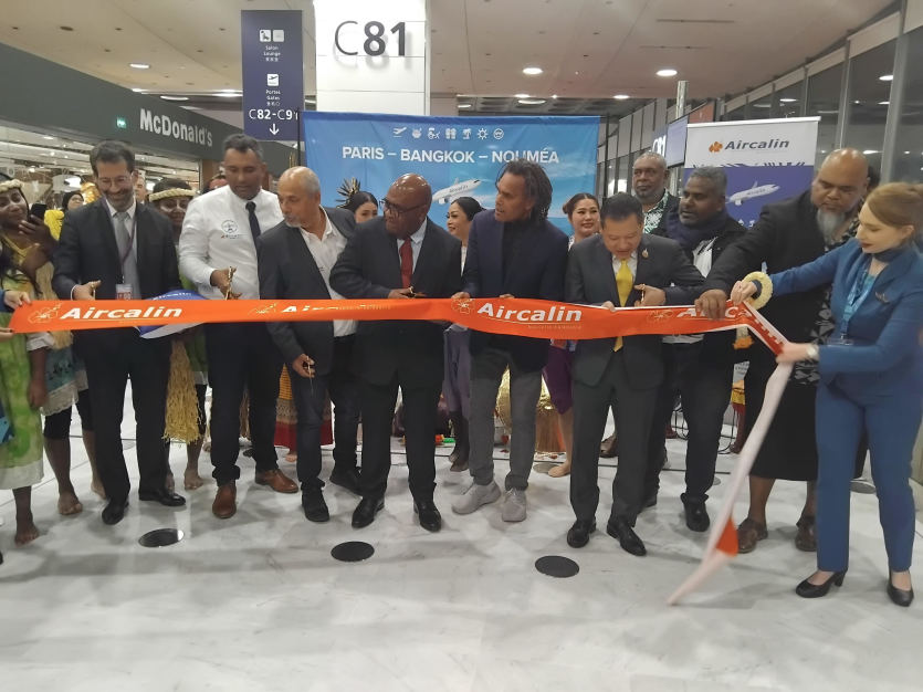 La ligne Bankok – Paris opérée par Aircalin a été officiellement ouverte ce mercredi matin en Thaïlande. Photo Anthony Tejero[13h15] Georges Selefen, le directeur d’aircalin, a souligné ce "moment historique" avec l’ouverture de "cet axe stratégique et symbolique pour notre compagnie ". Un projet "ambitieux" et un partenariat avec les compagnies et autorités thaïlandaises auquel il souhaite "prospérité et longévité".
