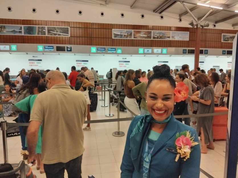 280 passagers sont attendus sur le vol, avec un grand sourire des équipes postées à l’enregistrement. Photo Anthony TejeroEt ce, grâce à la route la plus rapide opérée pour un vol commercial, entre le Caillou et l’Hexagone, soit une durée de vol comprise entre 22 heures et 23 heures 40 (sans compter les deux heures d’escale à l’aéroport international de Bangkok). "Plus c’est court, mieux c’est, car ce trajet est déjà très long et fatigant en soi, apprécie Leslie 44 ans, qui a profité des prix promotionnels de l’ouverture de la ligne via Bangkok pour partir passer les fêtes de fin d’année en France "car sinon les tarifs sont trop élevés pour moi".